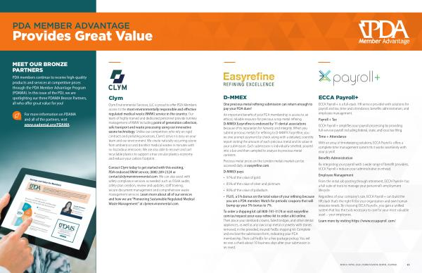PDA members continue to receive high-quality products and services at competitive prices through the PDA Member Advantage Program ( PDAMA ). In this issue of the PDJ , we are spotlighting our three PDAMA Bronze Partners , all who offer great value for you !