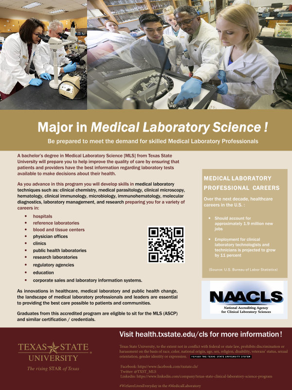 A bachelor’ s degree in Medical Laboratory Science [ MLS ] from Texas State University will prepare you to help improve the quality of care by ensuring that patients and providers have the best information regarding laboratory tests available to make decisions about their health.