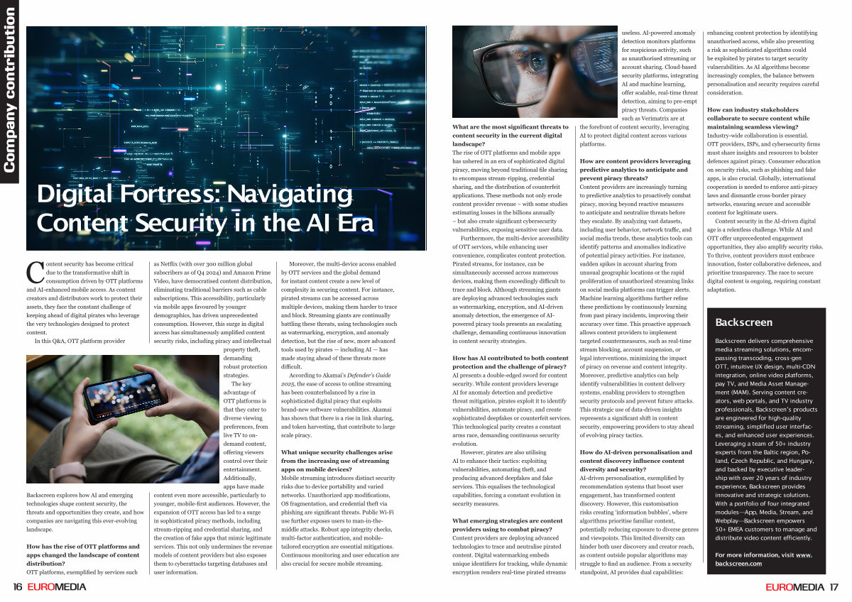 Content security in the AI-driven digital age is a relentless challenge. While AI and OTT offer unprecedented engagement opportunities, they also amplify security risks. To thrive, content providers must embrace innovation, foster collaborative defences, and prioritise transparency. The race to secure digital content is ongoing, requiring constant adaptation.