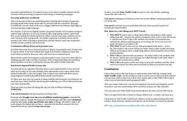 � YOU DON ' T need to know a thing about affiliate marketing to make money online from this- because the system is designed so that even a 9 year old can use it. And because Tube Traffic Code methods run counter to the mainstream methods the affiliate marketing gurus are teaching, the newer you are to the game, the better you ' re likely to do