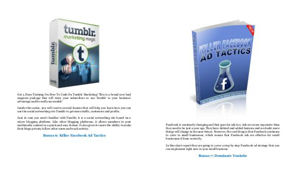 Inside this series, you will receive several lessons that will help you learn how you can use the social networking site Tumblr to get more traffic, customers and profits.