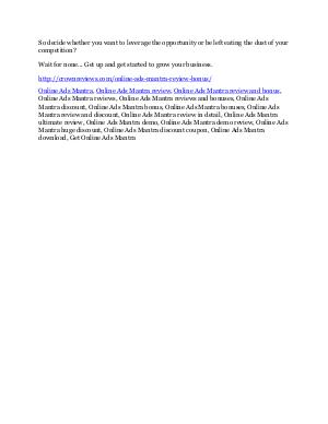 Wait for none... Get up and get started to grow your business. http:// crownreviews. com / online-ads-mantra-review-bonus /
