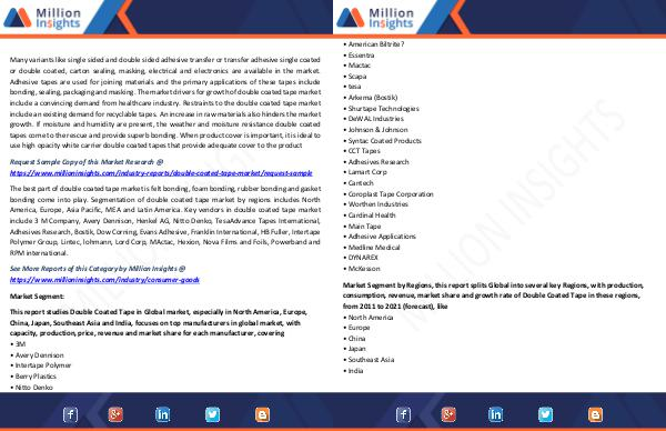 include a convincing demand from healthcare industry. Restraints to the double coated tape market