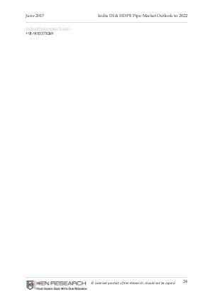 June 2017 India DI & HDPE Pipe Market Outlook to 2022 Ankur@kenresearch.com +91-9015378249 © Licensed product of Ken Research; should not be copied 24