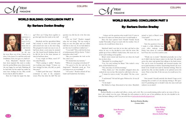 WORLD BUILDING : CONCLUSION PART 3 By : Barbara Donlon Bradley