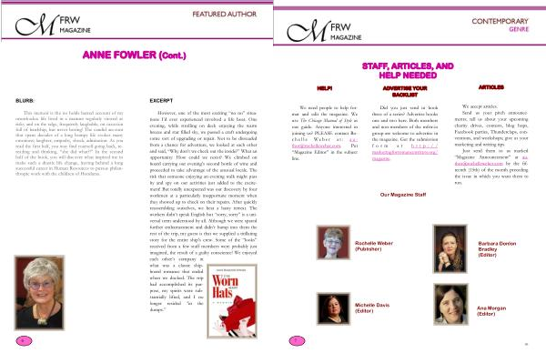 We need people to help format and edit the magazine . We use The Chicago Manual of Style as our guide . Anyone interested in joining us ? PLEASE contact Roc h e l l e W e b e r a t : a u - thor @ rochelleweber . com . Put “ Magazine Editor ” in the subject line .