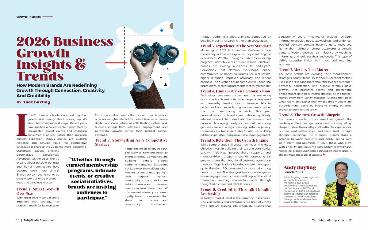 Andy Buyting is a recognized authority in content marketing and brand positioning. Since launching his first book in 2007 and magazine in 2009, he’ s helped business leaders use custom content to build credibility, drive growth, and own their space in the market.