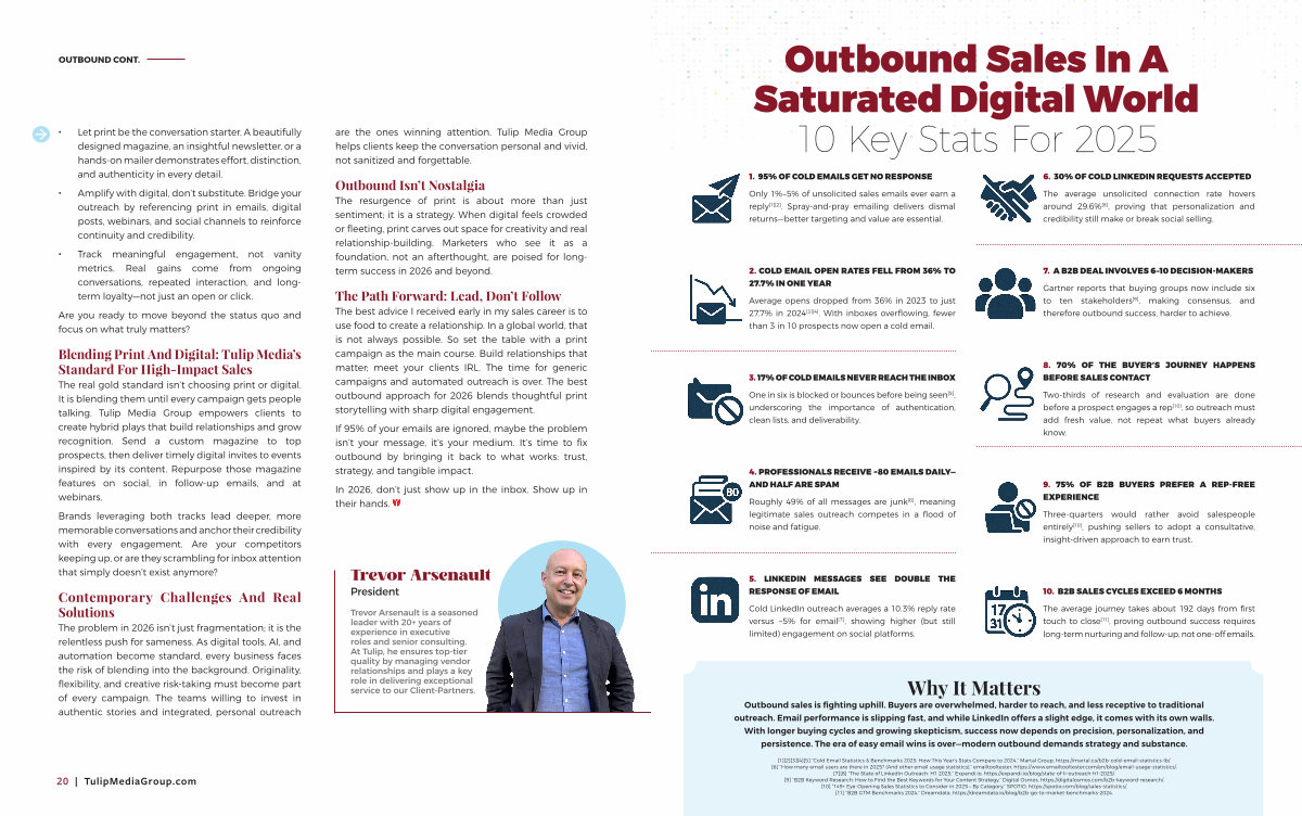 Why It Matters Outbound sales is fighting uphill. Buyers are overwhelmed, harder to reach, and less receptive to traditional outreach. Email performance is slipping fast, and while LinkedIn offers a slight edge, it comes with its own walls. With longer buying cycles and growing skepticism, success now depends on precision, personalization, and persistence. The era of easy email wins is over— modern outbound demands strategy and substance.