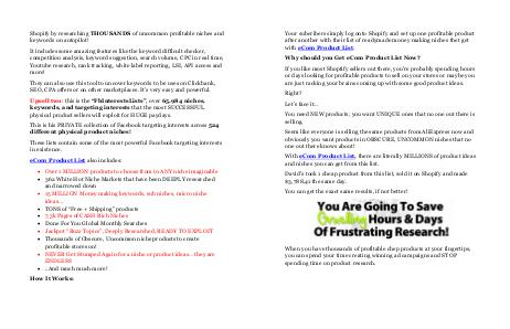 Your subcribers simply log onto Shopify and set up one profitable product