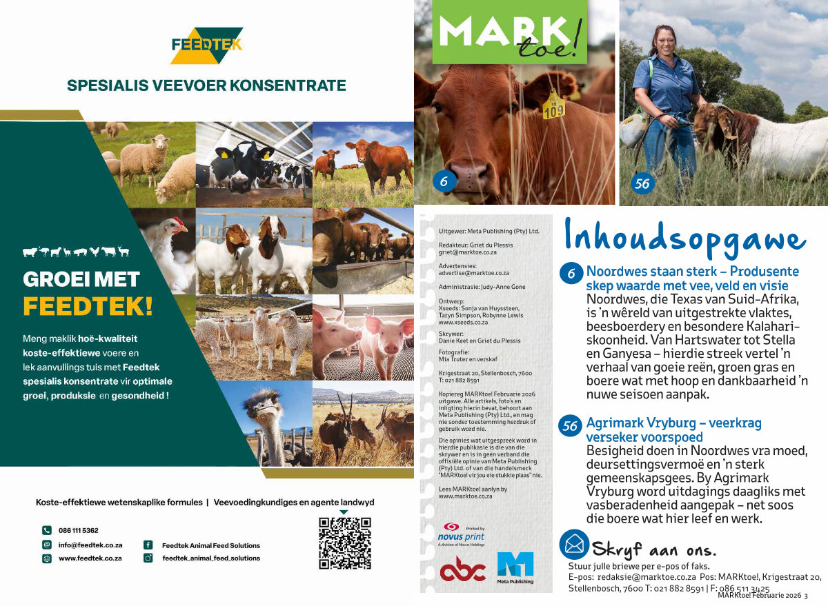 Kopiereg MARKtoe! Februarie 2026 uitgawe. Alle artikels, foto’ s en inligting hierin bevat, behoort aan Meta Publishing( Pty) Ltd., en mag nie sonder toestemming herdruk of gebruik word nie.