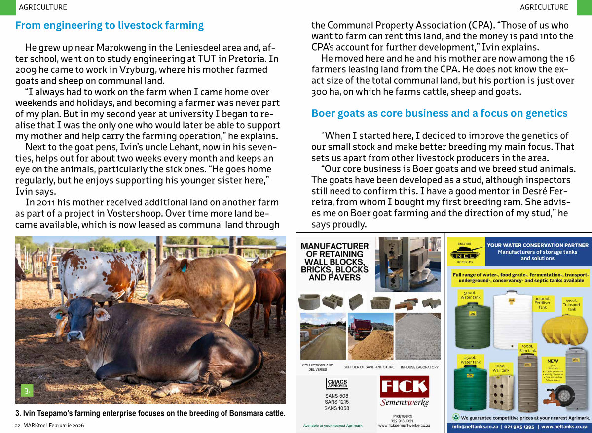 the Communal Property Association( CPA).“ Those of us who want to farm can rent this land, and the money is paid into the CPA’ s account for further development,” Ivin explains.