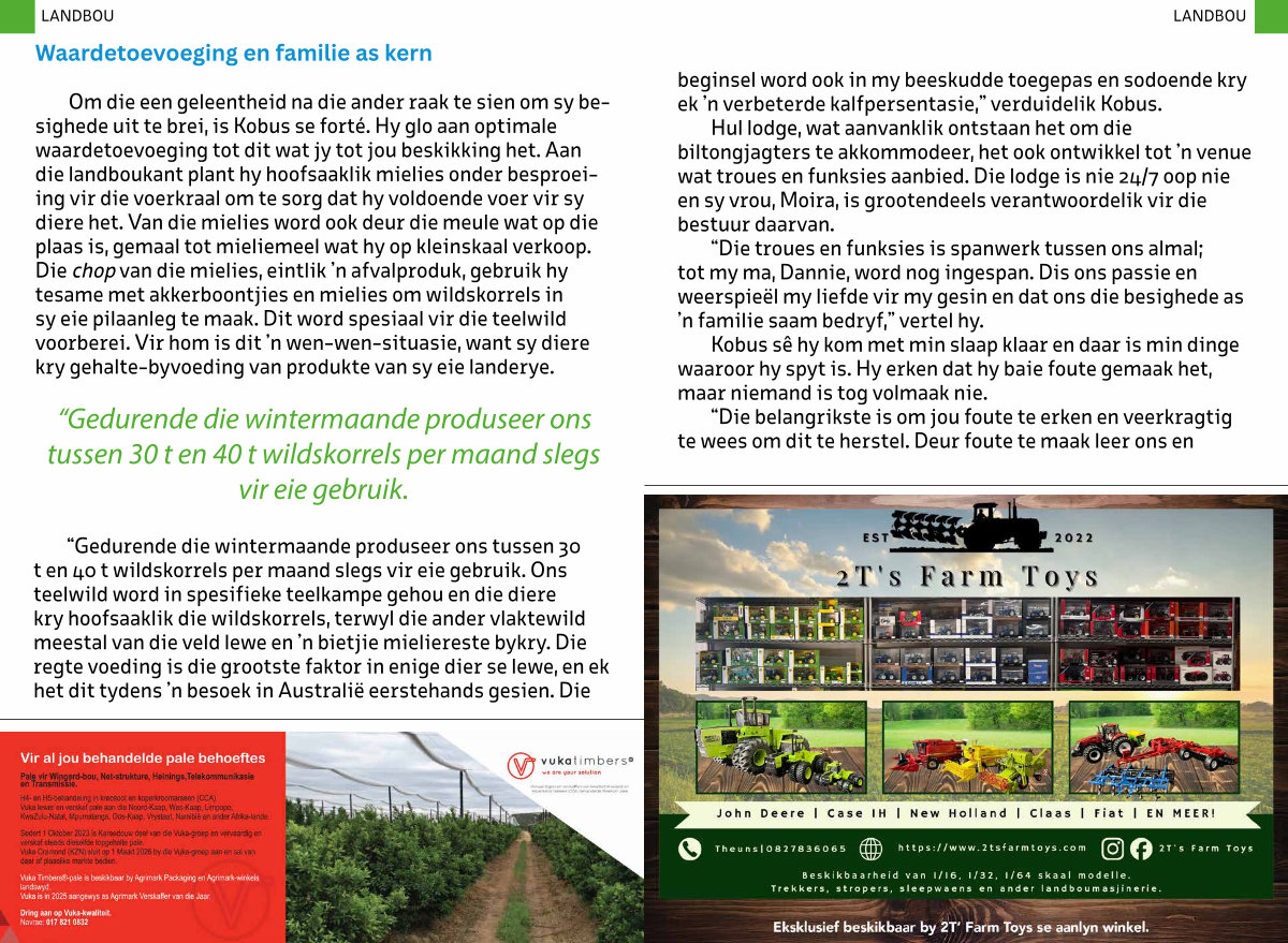 beginsel word ook in my beeskudde toegepas en sodoende kry ek’ n verbeterde kalfpersentasie,” verduidelik Kobus.