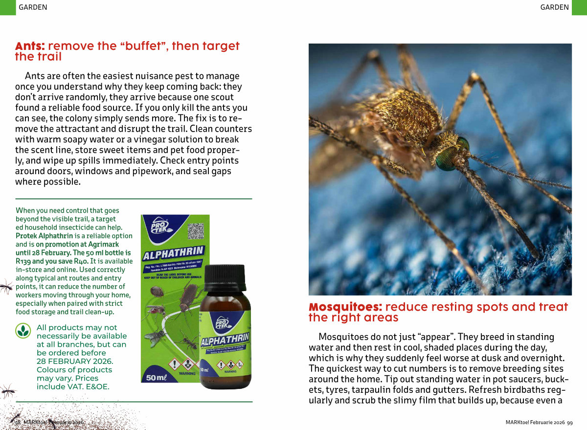 Mosquitoes do not just“ appear”. They breed in standing water and then rest in cool, shaded places during the day, which is why they suddenly feel worse at dusk and overnight. The quickest way to cut numbers is to remove breeding sites around the home. Tip out standing water in pot saucers, buckets, tyres, tarpaulin folds and gutters. Refresh birdbaths regularly and scrub the slimy film that builds up, because even a