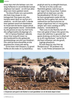Dries boer met Dorpers , sy groot liefde en die rede vir sy boerderypraktyk wat hy so deeglik bestuur . “ Ek het al in die suide van Namibië geboer , lank terug in die 1990 ’ s toe my pa daar ‘ n plaas gehad het en deel was van die karakoelbedryf . Ek het in 1991 by hom oorgeneem nadat ek my werk by Decca gelos het , waar ons radioseine van basisstasies na skepe uitgestuur het vir navigasie , amper iets soos vandag se GPSstelsels ,” verduidelik hy .