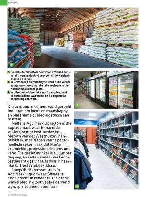 Langs die Expressmark is ‘ n Agrimark Liquor waar Shantelle Engelbrecht in beheer is . Die drankwinkel bied ‘ n groot verskeidenheid wyn , spiritualieë en bier aan .