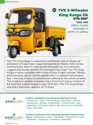 Products available at the following Agrimark Mechanisation stores : • Bredasdorp • Ceres • Graafwater • Malmesbury • Paarl