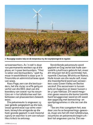 2 . Reusagtige waaiers help om die temperatuur by die rosyntjiewingerde te reguleer .