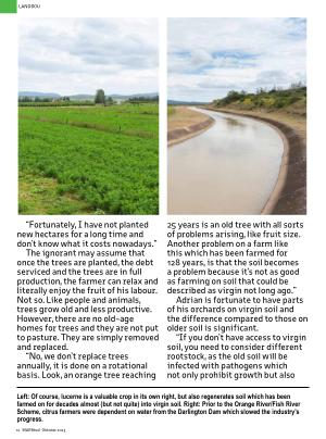 Left : Of course , lucerne is a valuable crop in its own right , but also regenerates soil which has been farmed on for decades almost ( but not quite ) into virgin soil . Right : Prior to the Orange River / Fish River Scheme , citrus farmers were dependent on water from the Darlington Dam which slowed the industry ’ s progress .