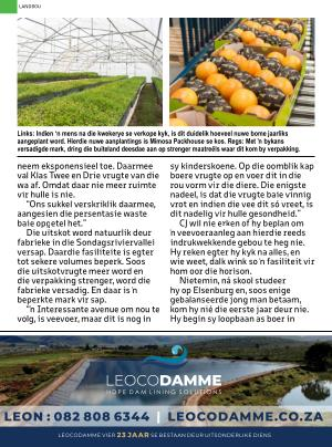 Links : Indien ‘ n mens na die kwekerye se verkope kyk , is dit duidelik hoeveel nuwe bome jaarliks aangeplant word . Hierdie nuwe aanplantings is Mimosa Packhouse se kos . Regs : Met ʼn bykans versadigde mark , dring die buiteland deesdae aan op strenger maatreëls waar dit kom by verpakking .