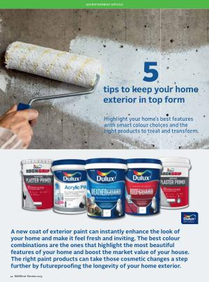 A new coat of exterior paint can instantly enhance the look of your home and make it feel fresh and inviting . The best colour combinations are the ones that highlight the most beautiful features of your home and boost the market value of your house . The right paint products can take those cosmetic changes a step further by futureproofing the longevity of your home exterior .