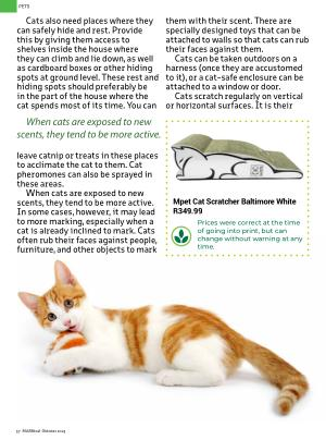 Cats scratch regularly on vertical or horizontal surfaces . It is their leave catnip or treats in these places to acclimate the cat to them . Cat pheromones can also be sprayed in these areas .