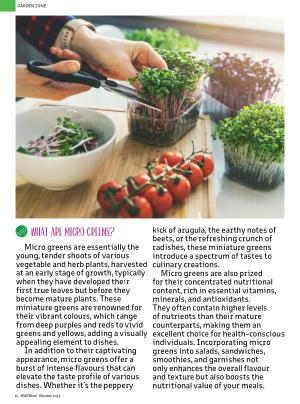 Micro greens are also prized for their concentrated nutritional content , rich in essential vitamins , minerals , and antioxidants . They often contain higher levels of nutrients than their mature counterparts , making them an excellent choice for health-conscious individuals . Incorporating micro greens into salads , sandwiches , smoothies , and garnishes not only enhances the overall flavour and texture but also boosts the nutritional value of your meals .