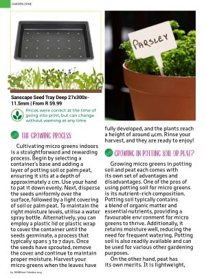 Cultivating micro greens indoors is a straightforward and rewarding process . Begin by selecting a container ’ s base and adding a layer of potting soil or palm peat , ensuring it sits at a depth of approximately 2 cm . Use your hand to pat it down evenly . Next , disperse the seeds uniformly over the surface , followed by a light covering of soil or palm peat . To maintain the right moisture levels , utilise a water spray bottle . Alternatively , you can employ a plastic lid or plastic wrap to cover the container until the seeds germinate , a process that typically spans 3 to 7 days . Once the seeds have sprouted , remove the cover and continue to maintain proper moisture . Harvest your micro greens when the leaves have
