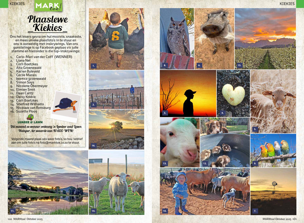 Ons het lesers gevra om hul mooiste, snaaksste, en mees unieke plaasfoto’ s in te stuur en ons is oorweldig met inskrywings. Van ons gunstelinge is op Facebook geplaas vir julle stemme en hieronder is die top-inskrywings: