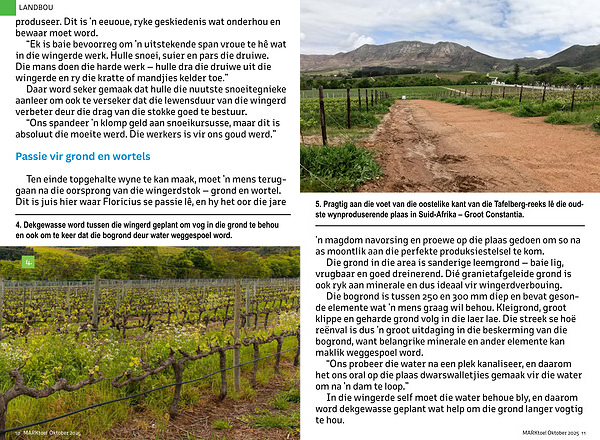 In die wingerde self moet die water behoue bly, en daarom word dekgewasse geplant wat help om die grond langer vogtig te hou.