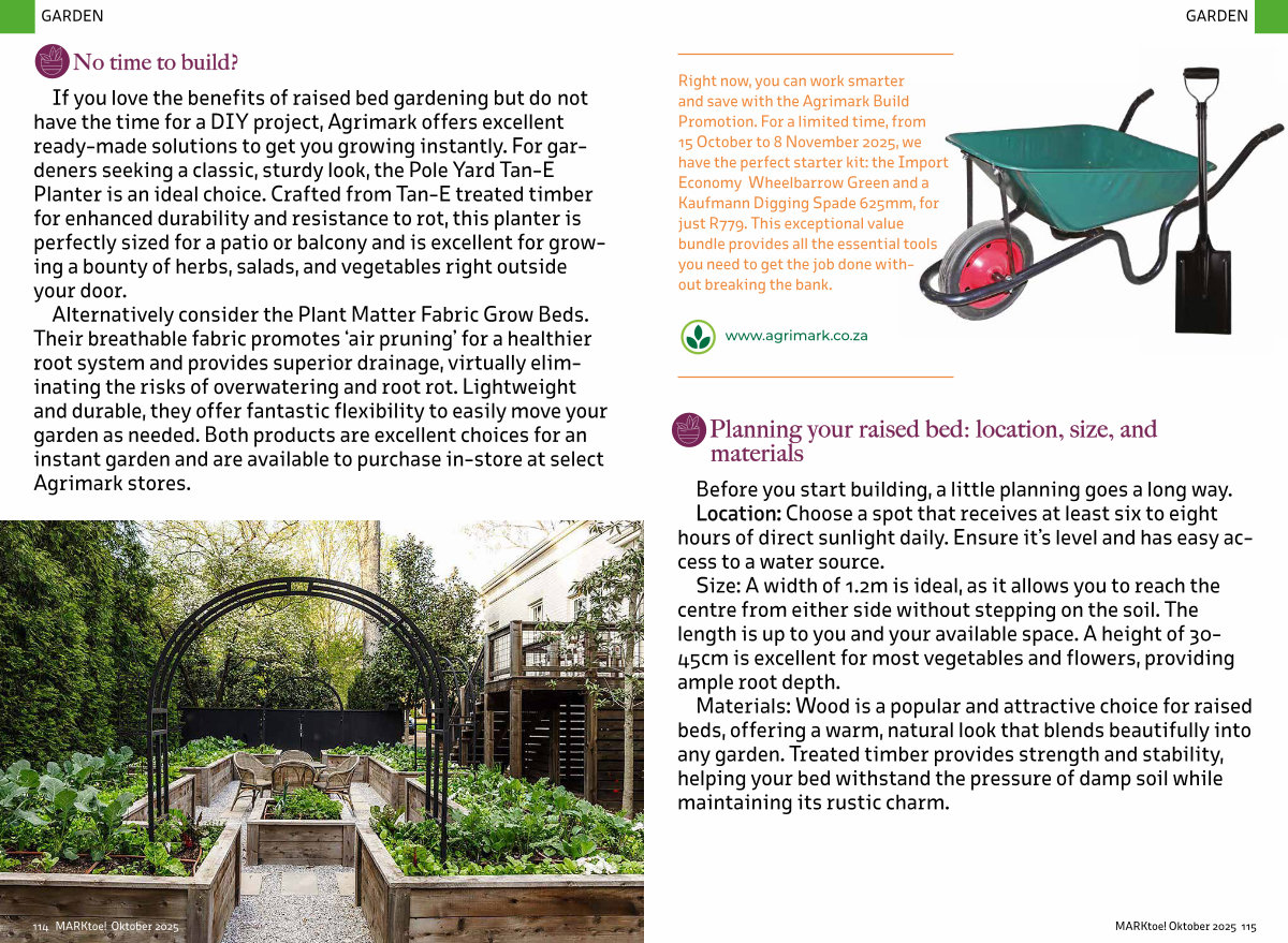 Right now, you can work smarter and save with the Agrimark Build Promotion. For a limited time, from 15 October to 8 November 2025, we have the perfect starter kit: the Import Economy Wheelbarrow Green and a Kaufmann Digging Spade 625mm, for just R779. This exceptional value bundle provides all the essential tools you need to get the job done without breaking the bank.