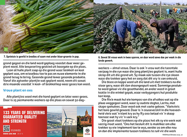 Leon sê hulle plant raap op die grond waar brokkoli en kool geplant was, om wisselbou toe te pas en nuwe elemente in die grond terug te bring. Gesonde grond lewer gesonde produkte. Vanaf die agtweke-plantjie wat geplant word, neem dit sowat drie maande voordat’ n kool- of brokkolikop weer geoes kan word.