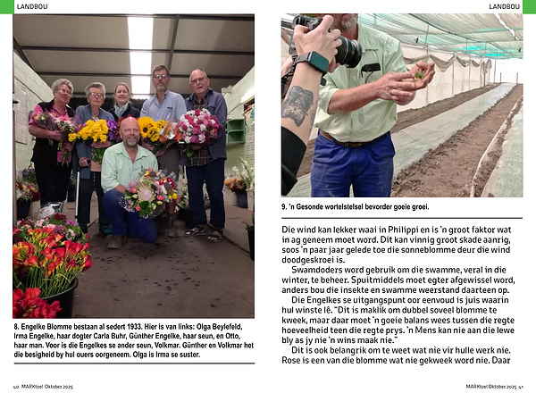 Die Engelkes se uitgangspunt oor eenvoud is juis waarin hul winste lê.“ Dit is maklik om dubbel soveel blomme te kweek, maar daar moet’ n goeie balans wees tussen die regte hoeveelheid teen die regte prys.’ n Mens kan nie aan die lewe bly as jy nie’ n wins maak nie.”
