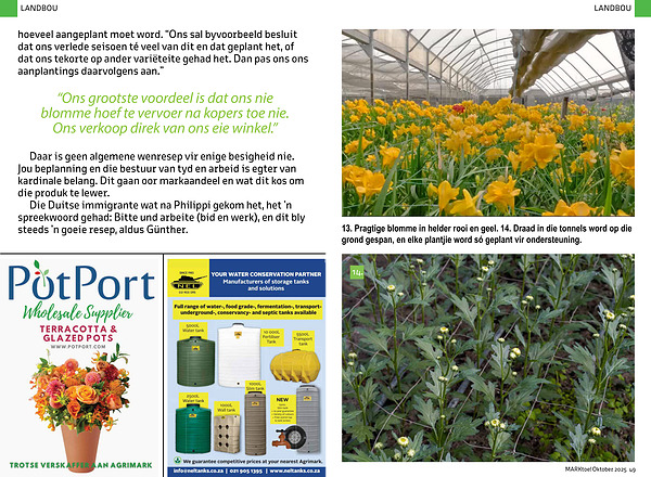 “ Ons grootste voordeel is dat ons nie blomme hoef te vervoer na kopers toe nie. Ons verkoop direk van ons eie winkel.”