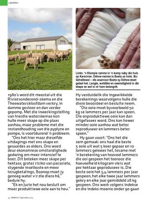 “ Die ooie moet byvoorbeeld 50 kg se lammers per jaar kan speen . Die onproduktiewe ooie kan dan uitgefaseer word . Ons kan liewer minder ooie aanhou wat beter reproduseer en lammers beter speen .”