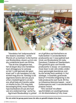 en al gefokus op klantediens en hulle bedien ‘ n verskeidenheid produsente oor ‘ n wye gebied wat strek van Bredasdorp tot naby Gansbaai , Caledon en Swellendam . Die grootste gros van hierdie produsente is skaap- en saaiboere , maar daar is ook vele ander , onder meer gemengde boerderye , wat by die winkel kom aanklop vir hul aankope . ‘ n Gewilde , groeiende bedryf in hierdie omgewing is die talle produsente wat Suid-Afrika se inheemse blomme kweek – veral fynbosspesies wat ‘ n verskeidenheid proteas insluit .