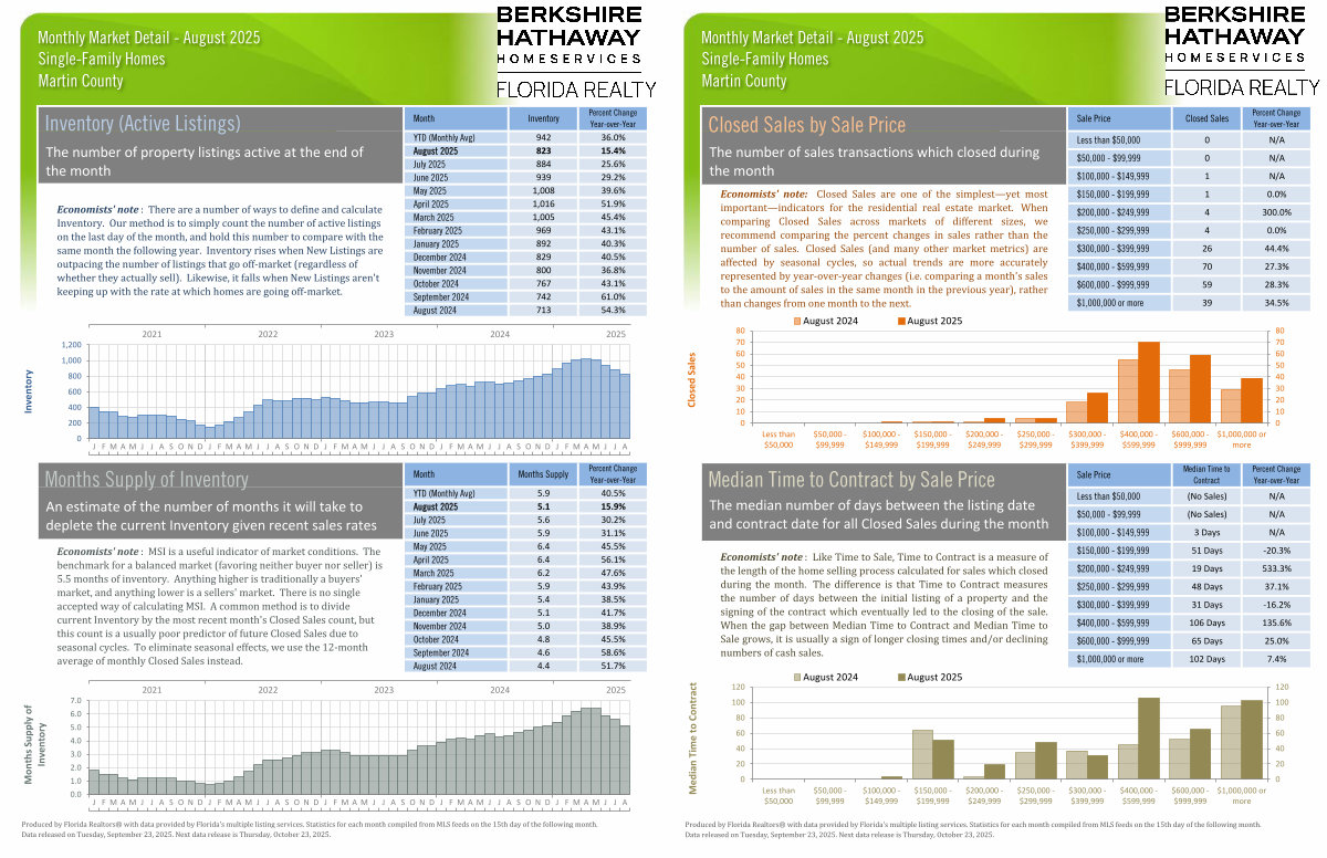Monthly Market Detail- August 2025 Single-Family Homes Martin County