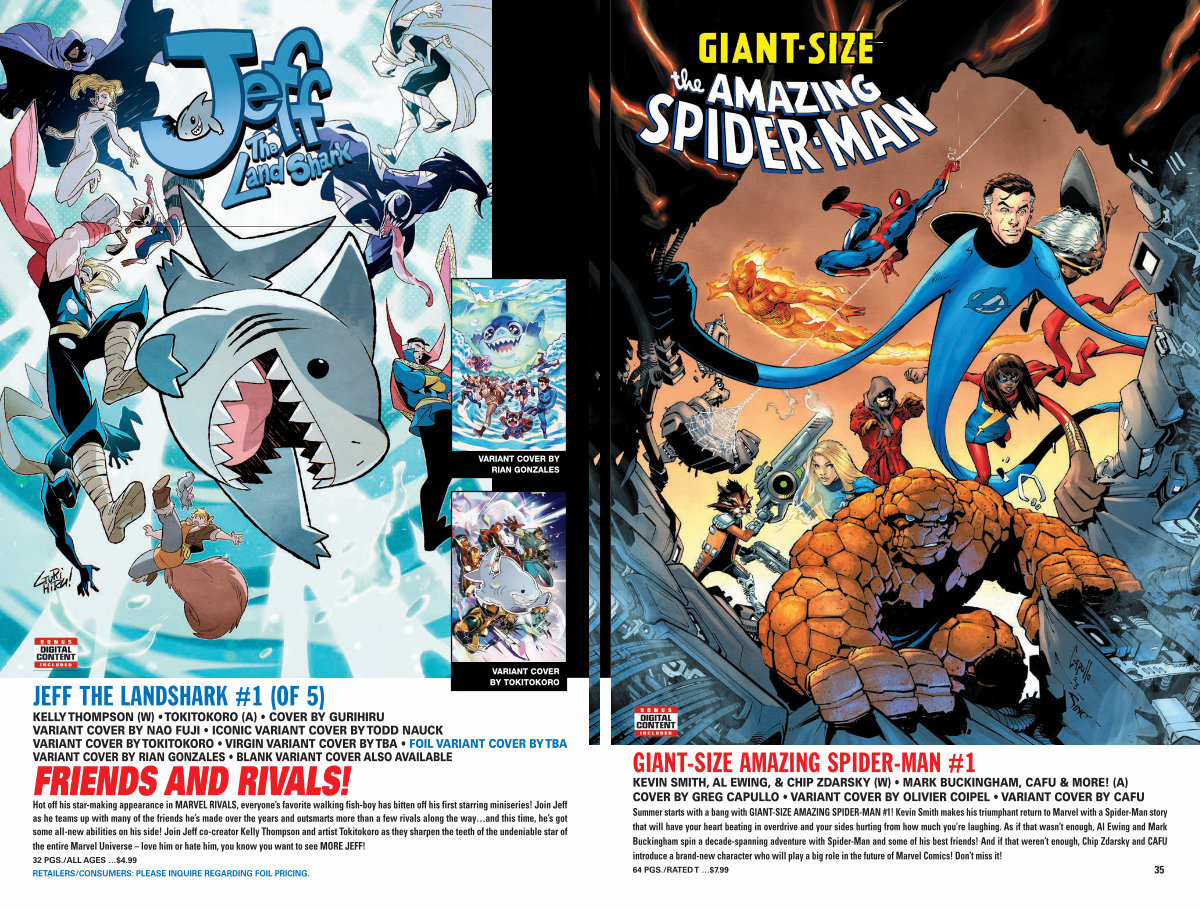 Hot off his star-making appearance in MARVEL RIVALS, everyone’ s favorite walking fish-boy has bitten off his first starring miniseries! Join Jeff as he teams up with many of the friends he’ s made over the years and outsmarts more than a few rivals along the way … and this time, he’ s got some all-new abilities on his side! Join Jeff co-creator Kelly Thompson and artist Tokitokoro as they sharpen the teeth of the undeniable star of the entire Marvel Universe – love him or hate him, you know you want to see MORE JEFF!