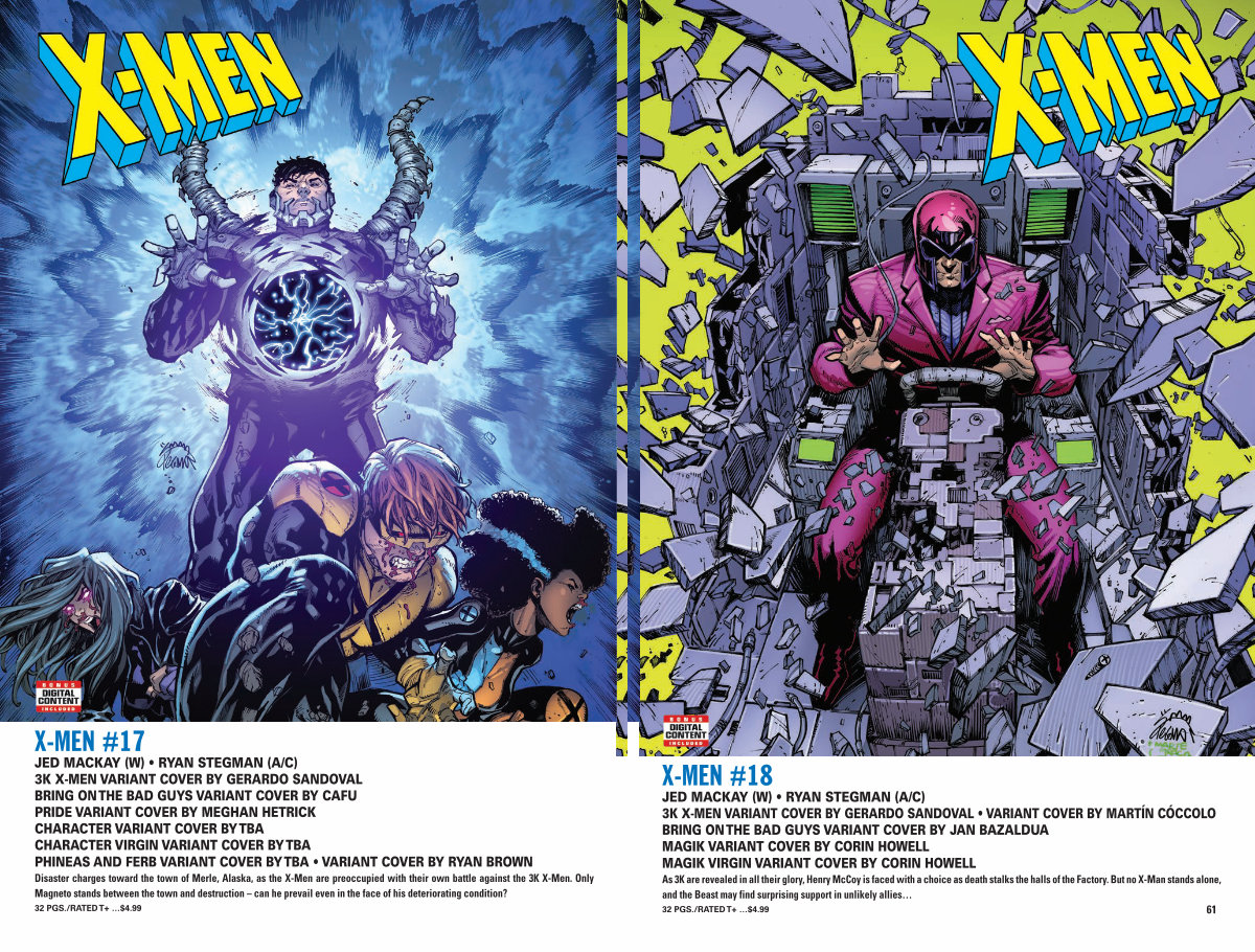 JED MACKAY( W) • RYAN STEGMAN( A / C) 3K X-MEN VARIANT COVER BY GERARDO SANDOVAL • VARIANT COVER BY MARTÍN CÓCCOLO BRING ON THE BAD GUYS VARIANT COVER BY JAN BAZALDUA MAGIK VARIANT COVER BY CORIN HOWELL MAGIK VIRGIN VARIANT COVER BY CORIN HOWELL