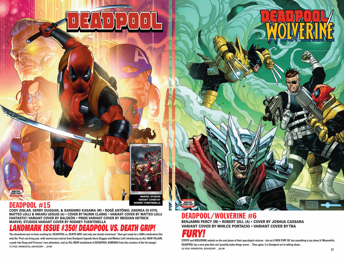 STRYFE and WOLVERINE embark on the next phase of their apocalyptic mission – but not if NICK FURY SR. has something to say about it! Meanwhile, DEADPOOL has a new plan that can’ t possibly make things worse … Then again, it is Deadpool we’ re talking about …
