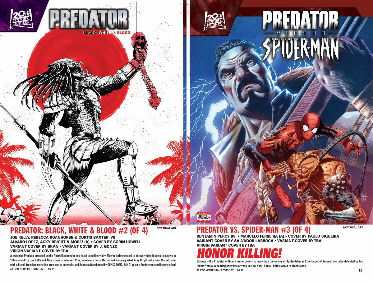A wounded Predator stranded on the Australian frontier has found an unlikely ally. They’ re going to need to do everything it takes to survive as“ Bloodwood” by Joe Kelly and Álvaro López continues! Plus, wordsmith Curtis Baxter and visionary artist Acky Bright make their Marvel debut with a blood-drenched story that promises to entertain, and Rebecca Roanhorse( PHOENIX SONG: ECHO) spins a Predator tale unlike any other!