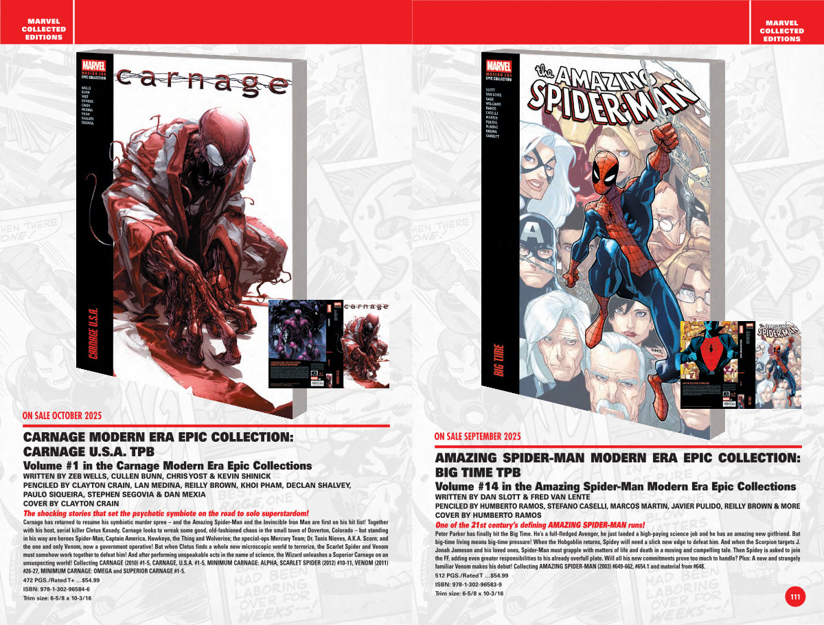 Peter Parker has finally hit the Big Time. He’ s a full-fledged Avenger, he just landed a high-paying science job and he has an amazing new girlfriend. But big-time living means big-time pressure! When the Hobgoblin returns, Spidey will need a slick new edge to defeat him. And when the Scorpion targets J. Jonah Jameson and his loved ones, Spider-Man must grapple with matters of life and death in a moving and compelling tale. Then Spidey is asked to join the FF, adding even greater responsibilities to his already overfull plate. Will all his new commitments prove too much to handle? Plus: A new and strangely familiar Venom makes his debut! Collecting AMAZING SPIDER-MAN( 2003) # 649-662, # 654.1 and material from # 648. 512 PGS./ Rated T …$ 54.99 ISBN: 978-1-302-96583-9 Trim size: 6-5 / 8 x 10-3 / 16