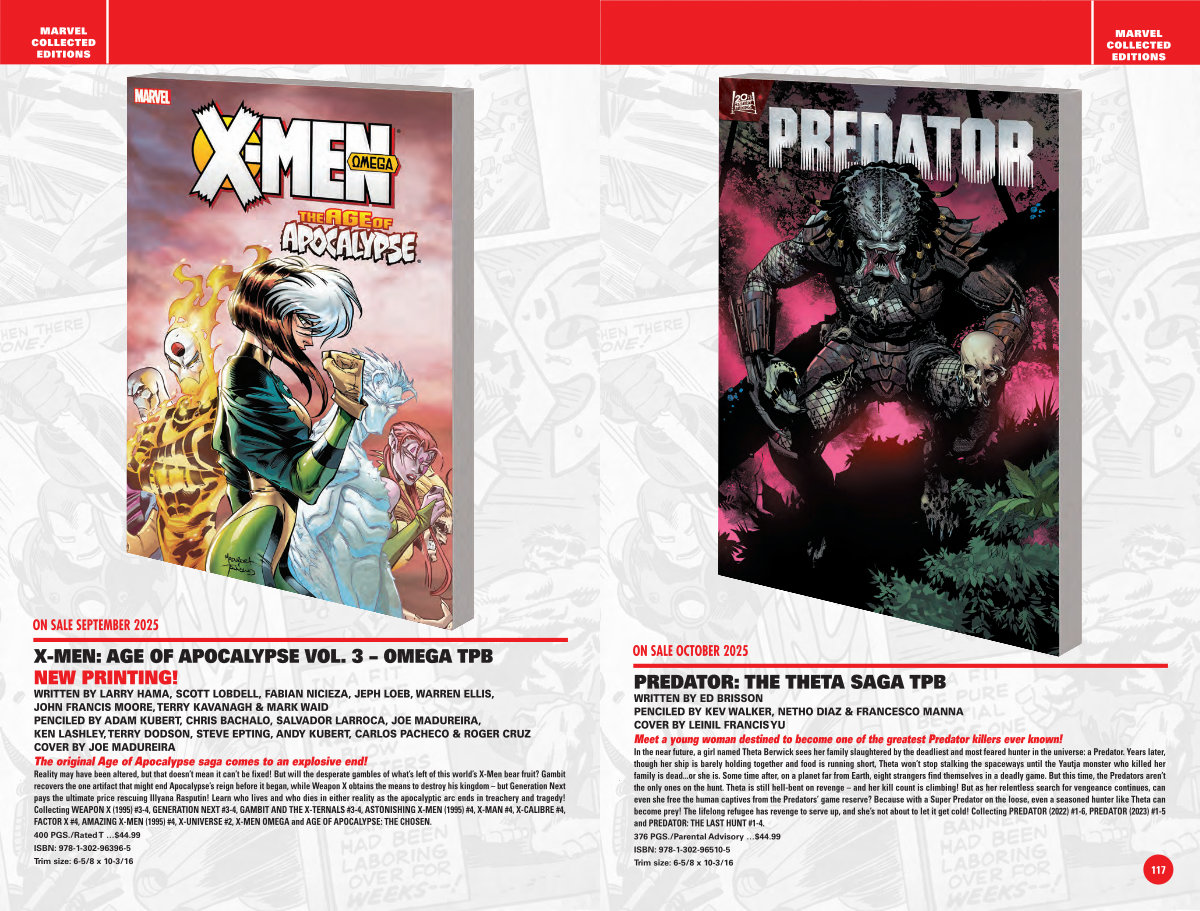 Reality may have been altered, but that doesn’ t mean it can’ t be fixed! But will the desperate gambles of what’ s left of this world’ s X-Men bear fruit? Gambit recovers the one artifact that might end Apocalypse’ s reign before it began, while Weapon X obtains the means to destroy his kingdom – but Generation Next pays the ultimate price rescuing Illyana Rasputin! Learn who lives and who dies in either reality as the apocalyptic arc ends in treachery and tragedy! Collecting WEAPON X( 1995) # 3-4, GENERATION NEXT # 3-4, GAMBIT AND THE X-TERNALS # 3-4, ASTONISHING X-MEN( 1995) # 4, X-MAN # 4, X-CALIBRE # 4, FACTOR X # 4, AMAZING X-MEN( 1995) # 4, X-UNIVERSE # 2, X-MEN OMEGA and AGE OF APOCALYPSE: THE CHOSEN. 400 PGS./ Rated T …$ 44.99 ISBN: 978-1-302-96396-5 Trim size: 6-5 / 8 x 10-3 / 16