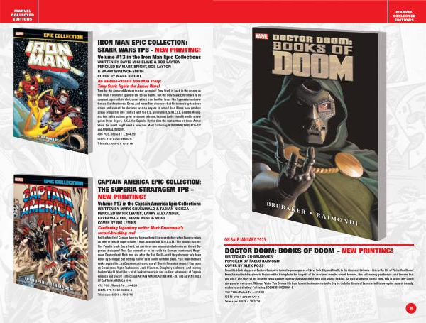 WRITTEN BY ED BRUBAKER PENCILED BY PABLO RAIMONDI COVER BY ALEX ROSS From the black steppes of Eastern Europe to the college campuses of New York City and finally to the throne of Latveria – this is the life of Victor Von Doom ! From his earliest disasters to his scientific triumphs to the tragedy of the fractured man he would become , this is the story you know – and the one that you don ’ t . The story of the missing years and the journey that shaped the man who would be king . An epic tragedy in comic form , this is unlike any Doom story you ’ ve ever seen . Witness Victor Von Doom ’ s life from his earliest moments to the day he took the throne of Latveria in this sweeping saga of tragedy , madness and destiny ! Collecting BOOKS OF DOOM # 1-6 . 152 PGS ./ Rated T + …$ 19.99 ISBN : 978-1-302-96473-3 Trim size : 6-5 / 8 x 10-3 / 16