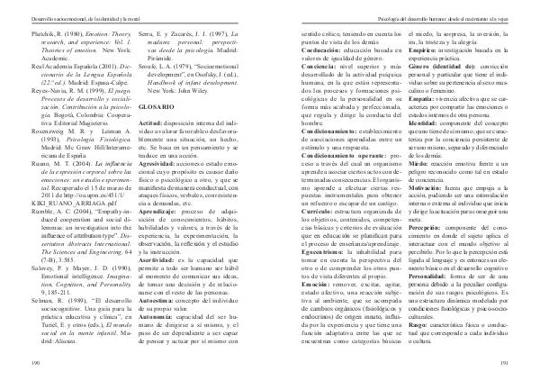 sentido crítico, teniendo en cuenta los puntos de vista de los demás Coeducación: educación basada en valores de igualdad de género. Conciencia: nivel superior y más desarrollado de la actividad psíquica humana, en la que están representados los procesos y formaciones psicológicas de la personalidad en su forma más acabada y perfeccionada, que regula y dirige la conducta del hombre. Condicionamiento: establecimiento de asociaciones aprendidas entre un estímulo y una respuesta. Condicionamiento operante: proceso a través del cual un organismo aprende a asociar ciertos actos con determinadas consecuencias. El organismo aprende a efectuar ciertas respuestas instrumentales para obtener un refuerzo o escapar de un castigo. Currículo: estructura organizada de los objetivos, contenidos, competencias básicas y criterios de evaluación que en educación se planifican para el proceso de enseñanza / aprendizaje. Egocentrismo: la inhabilidad para tomar en cuenta la perspectiva del otro o de comprender los otros puntos de vista diferentes al propio. Emoción: remover, excitar, agitar, estado afectivo, una reacción subjetiva al ambiente, que se acompaña de cambios orgánicos( fisiológicos y endocrinos) de origen innato, influida por la experiencia y que tiene una función adaptativa entre las que se encuentran como categorías básicas el miedo, la sorpresa, la aversión, la ira, la tristeza y la alegría. Empírico: investigación basada en la experiencia práctica. Género( identidad de): convicción personal y particular que tiene el individuo sobre su pertenencia al sexo masculino o femenino. Empatía: vivencia afectiva que se caracteriza por compartir las emociones o estados internos de otra persona. Identidad: componente del concepto que uno tiene de sí mismo; que se caracteriza por la conciencia persistente de ser uno mismo, separado y diferenciado de los demás. Miedo: reacción emotiva frente a un peligro reconocido como tal en estado de conciencia. Motivación: fuerza que empuja a la acción, pudiendo ser una estimulación interna o externa al individuo que inicia y dirige la actuación para conseguir una meta. Percepción: componente del conocimiento en donde el sujeto aplica el interactuar con el mundo objetivo al percibirlo. Por lo que la percepción está ligada al lenguaje y es entonces un elemento básico en el desarrollo cognitivo Personalidad: forma de ser de una persona debido a la peculiar configuración de sus rasgos psicológicos. Es una estructura dinámica modelada por condiciones fisiológicas y psico-socioculturales. Rasgo: característica física o conductual que corresponde a cada individuo o cultura.