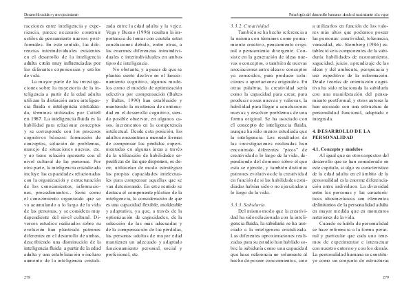 No obstante, y a pesar de que se plantea cierto declive en el funcionamiento cognitivo, algunos modelos como el modelo de optimización selectiva por compensación( Baltes y Baltes, 1990) han establecido y mantenido la existencia de continuidad en el desarrollo cognitivo, siendo posible observar, en algunos casos, incrementos en la competencia intelectual. Desde esta posición, los adultos encuentran a menudo formas de compensar las pérdidas experimentadas en algunas áreas a través de la utilización de habilidades específicas de las que disponen, es decir, utilizarían de modo estratégico las propias capacidades intelectuales para compensar aquellas que se van deteriorando. En este sentido se destaca el componente plástico de la inteligencia, la consideración de que es una capacidad flexible, moldeable y adaptativa, ya que, a través de la optimización de capacidades, de la selección de las más adecuadas y de la compensación de las pérdidas, las personas adultas de mayor edad mantienen un adecuado y adaptado funcionamiento personal, social y profesional, etc.