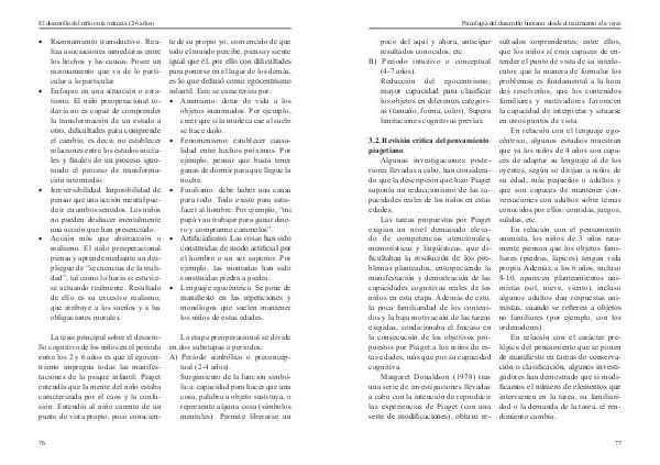 llo cognitivo de los niños en el período en dos subetapas o periodos: