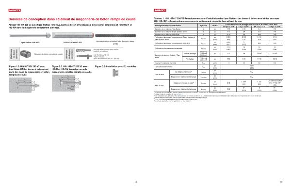 Adhésif HIT-HY 200 V3 avec tiges filetées Hilti HAS, barres à béton armé( barres à béton armé) déformées et Hilti HIS-N et HIS-RN dans la maçonnerie entièrement cimentée.