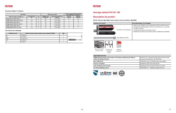 HIT-HY 100 avec tige filetée, barre à béton armé et insertions HIS-N / RN Système de mortier