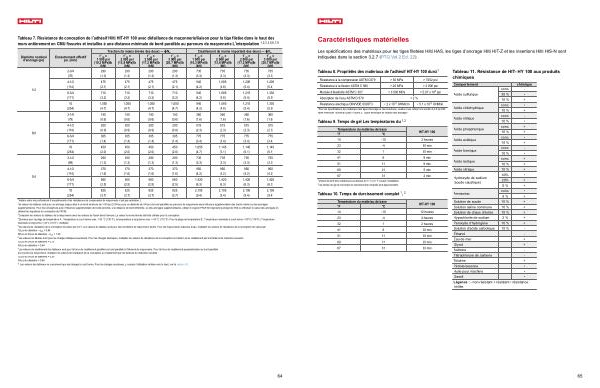 supplémentaires. Pour les conceptions avec l ' influence supplémentaire de bords proches, une distance de bord différente, ou des ancrages supplémentaires, utiliser le logiciel PROFIS Engineering Design de Hilti ou effectuer le calcul des ancrages en utilisant les équations de conception de l ' AC58. 3 Comparer les valeurs du tableau de la maçonnerie avec les valeurs de l ' acier dans l ' annexe. La valeur la moins élevée doit être utilisée pour la conception. 4 Données pour la plage de température A: Température à court terme max. = 55 ° C( 130 ° F), la température à long terme max. = 43 ° C( 110 ° F). Pour la plage de température B: Température maximale à court terme = 80 ° C( 176 ° F) | Température