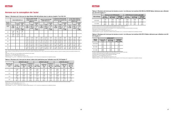 Tableau 1. Résistance de l’ acier pour les tiges filetées Hilti HAS utilisées dans le cadre du chapitre 17 de l’ ACI 318